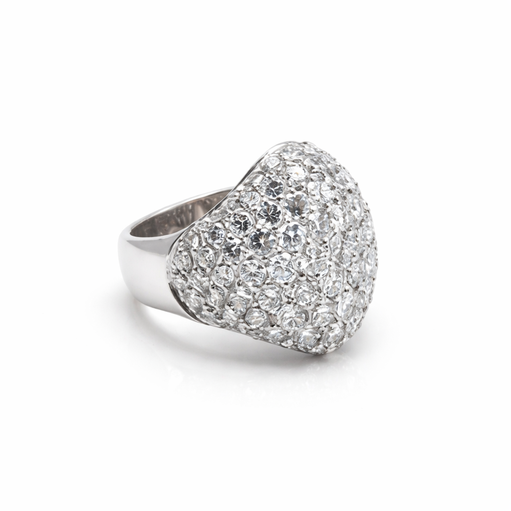 Anello in oro bianco 18Kt. realizzato a mano con diamanti taglio brillante Ct.3.40 (totale)