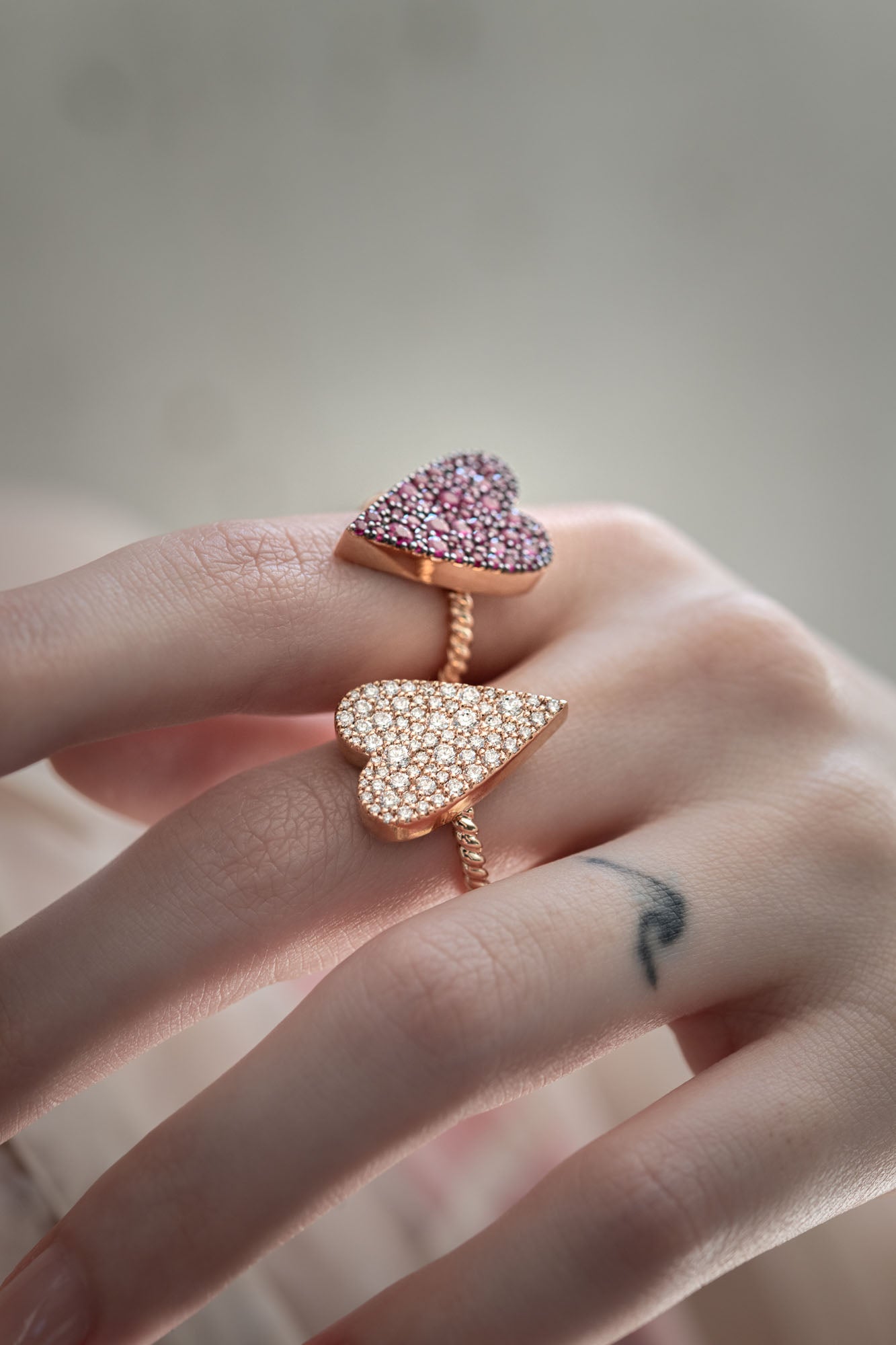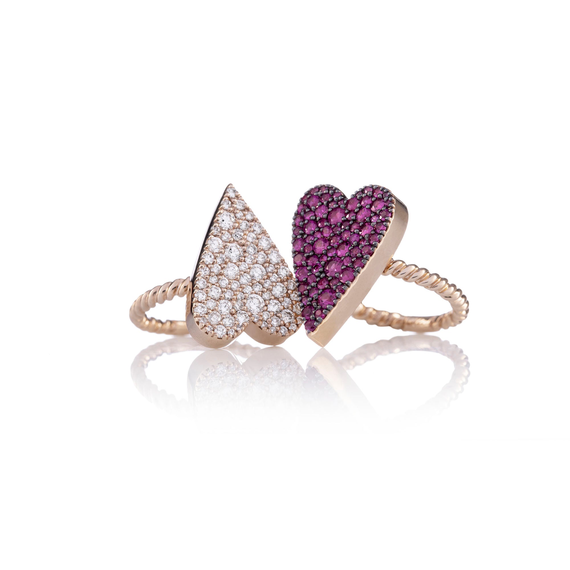 Anello cuore quarta misura disponibile in oro 9kt con full pavé di diamanti 1.02ct. Disponibile con e senza finitura brunita, specificare nelle note quella desiderata. -
